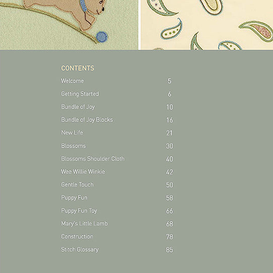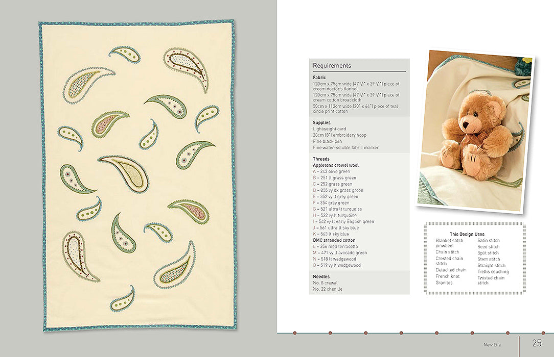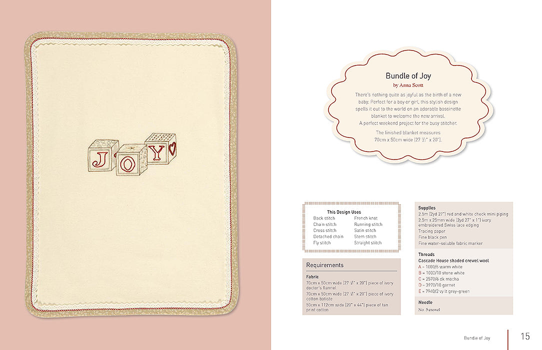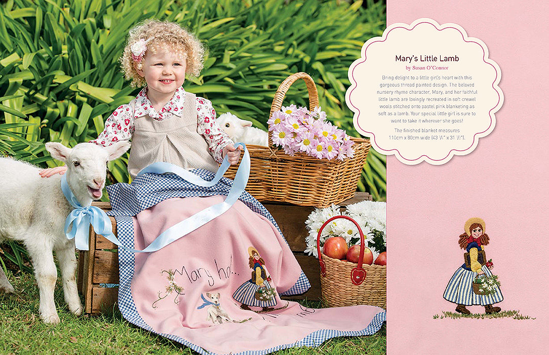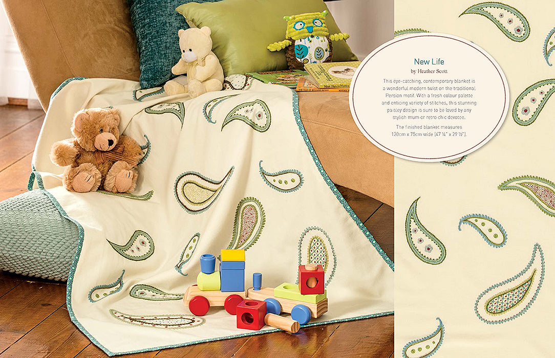 Blissful Beginnings features seven blankets and three bonus gift projects by renowned embroiderers including Susan O’Connor, Carolyn Pearce and Anna Scott.