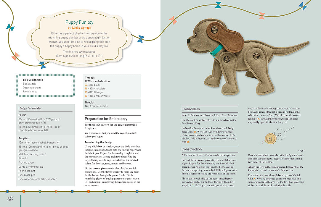 The ten projects are presented with beautiful photography, clear and concise instructions for the embroidery and construction, and detailed diagrams. Also included are clever tips for getting the best results from your embroidery, and a fully illustrated stitch glossary, making Blissful Beginnings suitable for experienced and novice stitchers alike.