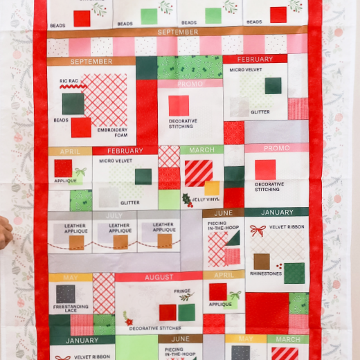 Join us, once a month for the mystery festive embroidery blocks and additional quilt blocks from the Kimberbell Mystery Mistletoe quilt. In December you will assemble all the components into a festive 32” x 50” wall quilt. Designs include multiple embroidery techniques and quilting all stitched in the hoop.