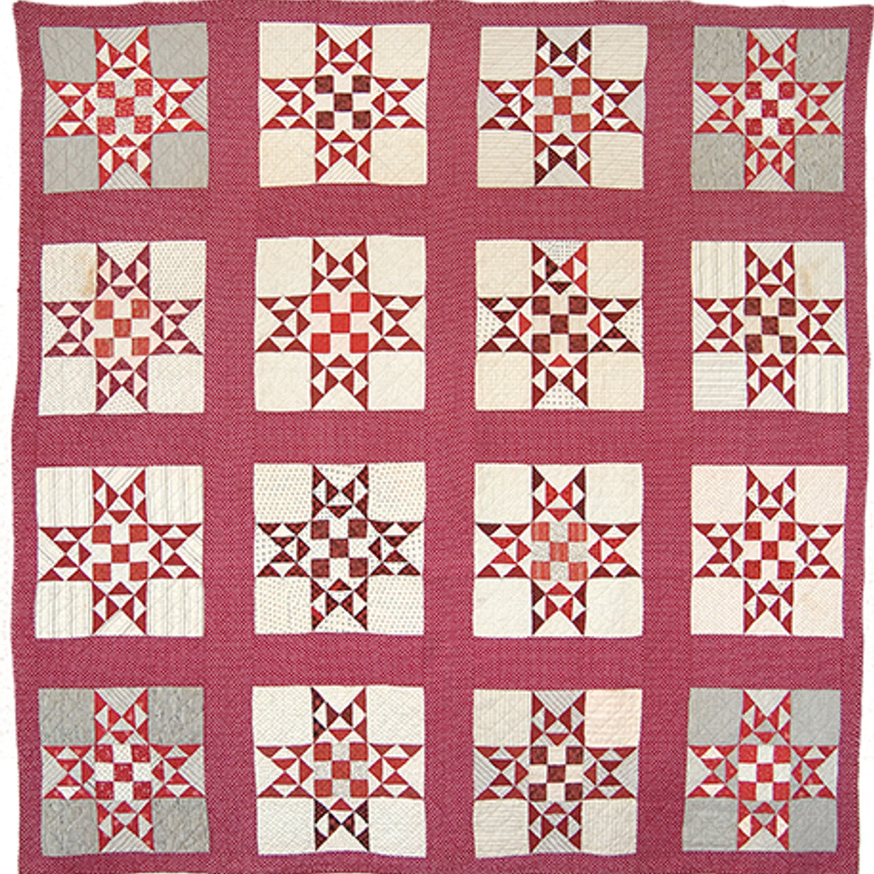I am delighted to share my ‘vintage’( late 19th century) Dolley Madison Star quilt with you in this pattern. I have newer versions but with her history of service as First Lady, I felt it was fitting to use this quilt. It is a large block (so much easier to piece) which is common for this time period. I think we sometimes place a value on a block by how complicated it is to piece. This block will change your mind as the center 9 patch is a bit tricky to stay on grid but otherwise it pieces beautifully.