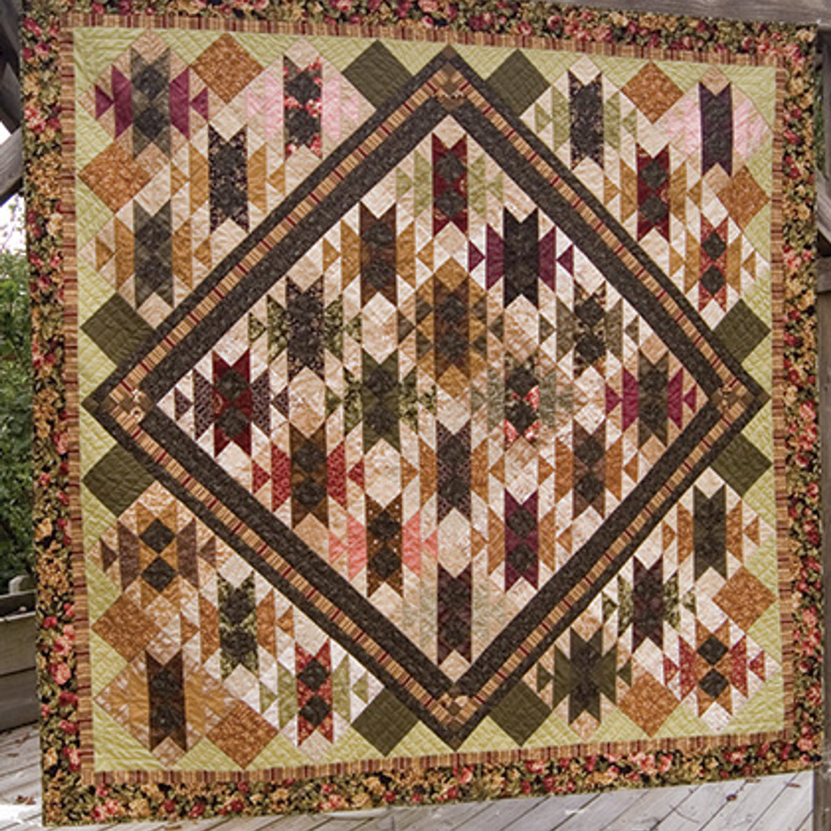 This exciting Mrs. Taft’s Choice Medallion quilt offers a unique setting utilizing the pieced Mrs. Taft’s Block as part of the corner settings. By placing this center 16 block unit on point and squaring off with a combination of units that make the math easy – the end result is a dynamic quilt.