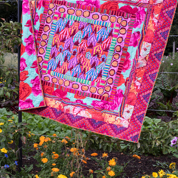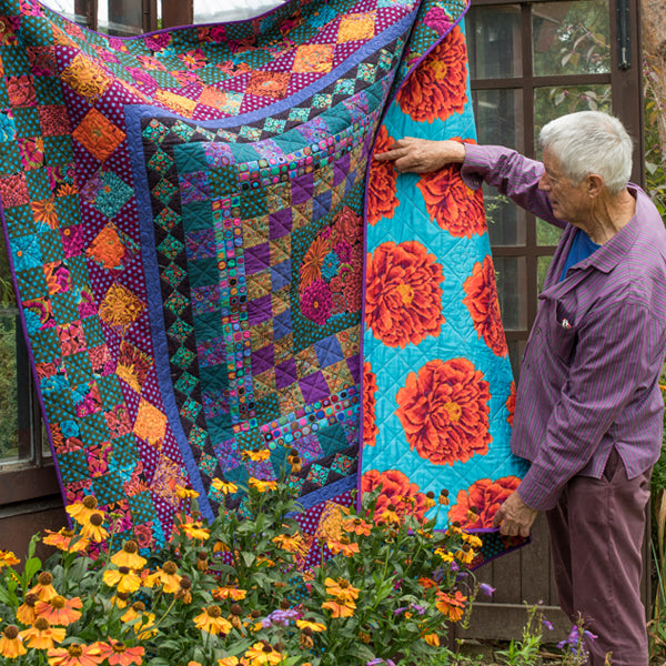 Medallion quilts have universal appeal and the simple framework of the medallion design makes a great vehicle for Kaffe’s eye-catching color combinations in his brilliant range of fabric designs. Assisted by his team of designers and makers, Kaffe has created an exquisite and varied range of 19 medallion designs, among them: