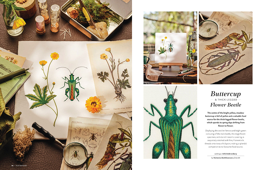 A bounty of plants and pollinators to bring to life with needle and thread.